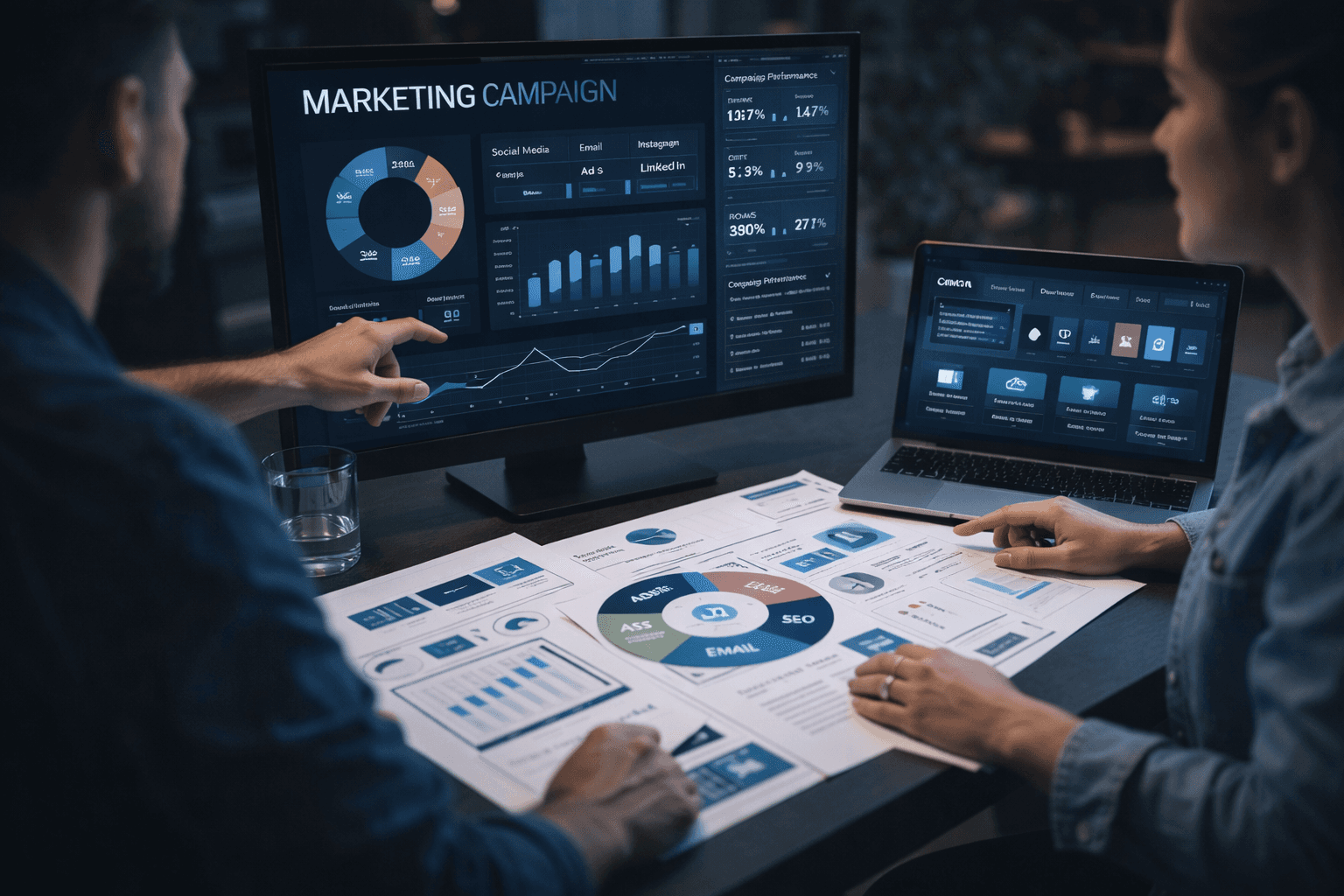 Une campagne marketing bien pensée permet de transformer une simple annonce en véritable événement de communication. Elle permet de structurer votre message, d’orchestrer vos supports et de maximiser la visibilité de votre entreprise. L’objectif est de capter l’attention, générer de l’engagement et créer un impact durable auprès de votre audience.
