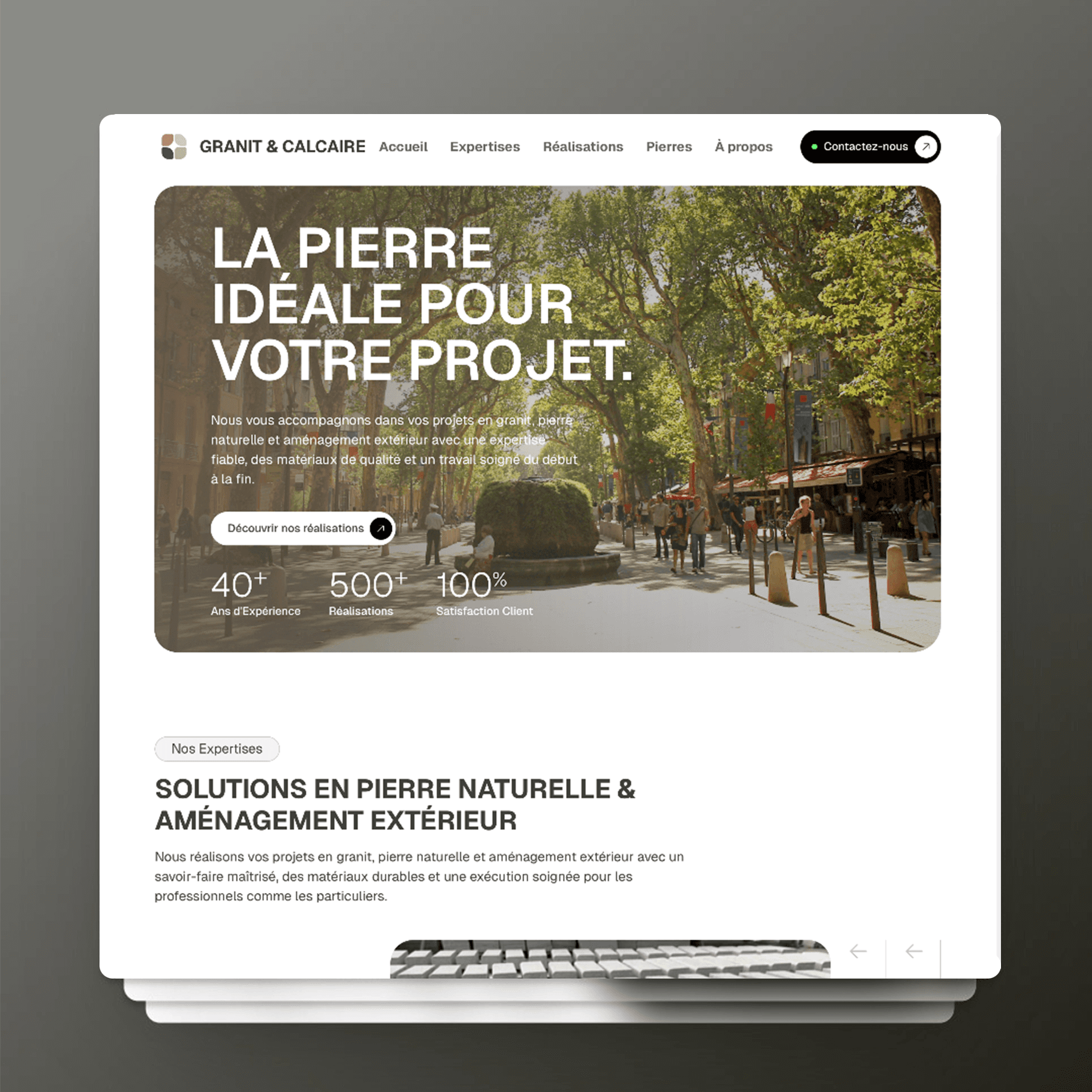 La refonte du site a permis à Granit & Calcaire de disposer d’une présence en ligne beaucoup plus claire et professionnelle. Le nouveau site facilite la compréhension de l’offre et encourage les visiteurs à entrer en contact avec l’entreprise pour leurs projets.